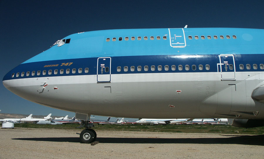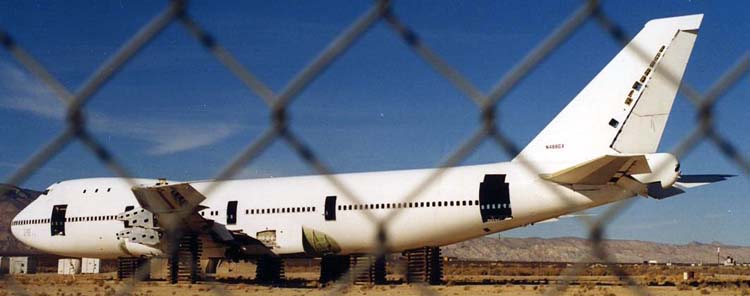 Boeing 747 in weiß, die noch sehr intakt aussieht |