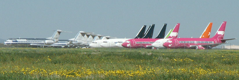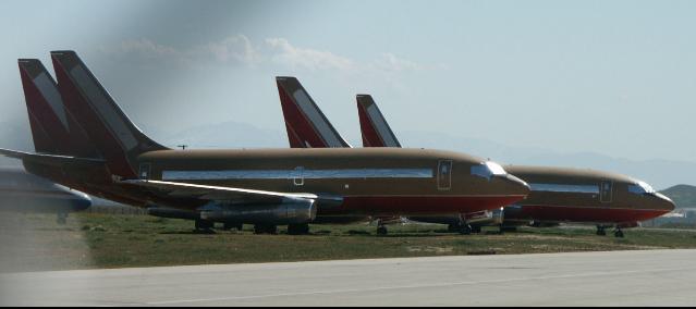 Boeing 737 - 200 der "ZIP Airlines" und links im Bild mehrere