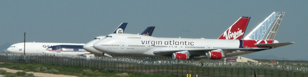 Virgin Atlantic Boeing 747 (eine davon hat schon ein silbernes Leitwerk),