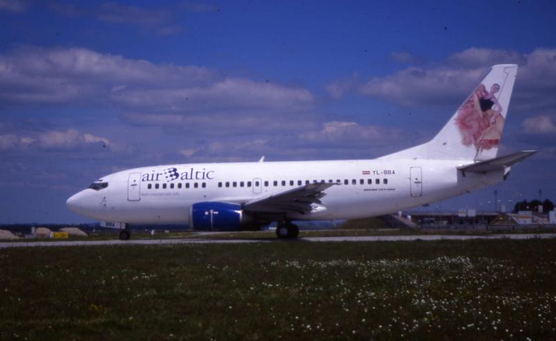 Exemplare der Boeing 737 - 500, mit einer in rosa gekleideten Tänzerin