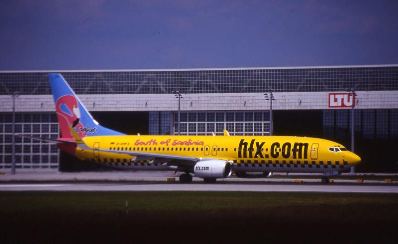 737 - 300 rum. Hier die Maschine auf dem Taxiway in München.