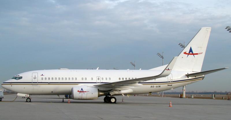 Boeing 737 - 700 der Bugshan Group landete zu einem Tankstopp in München. |