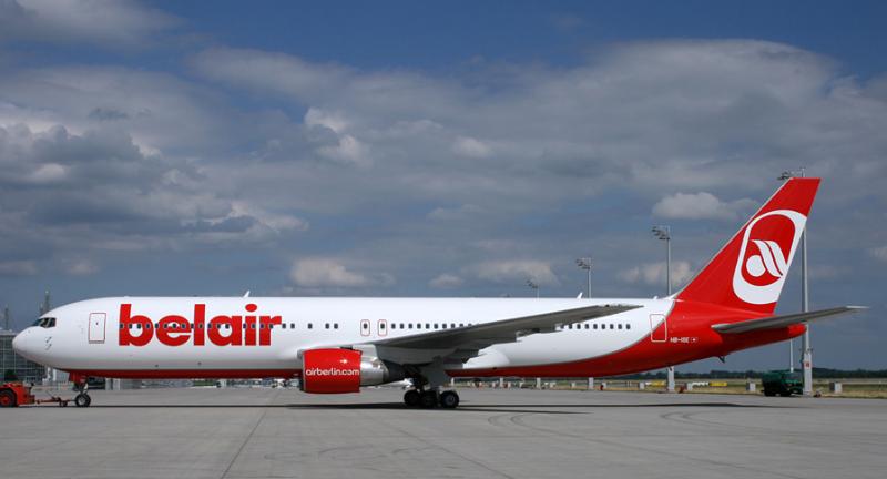 kam mit einer Boeing 767 - 300 mit Air Berlin Leitwerk zu einem Check