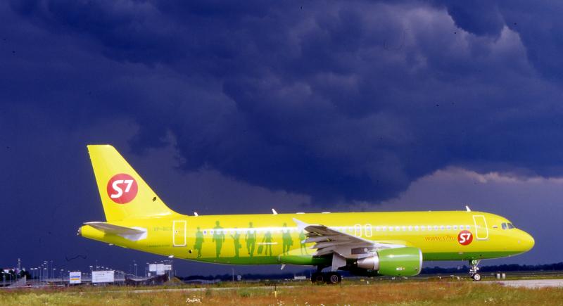 die schwarzen Wolken. Das Foto dieses Airbus A 320 der Sibir ist gut gelungen!