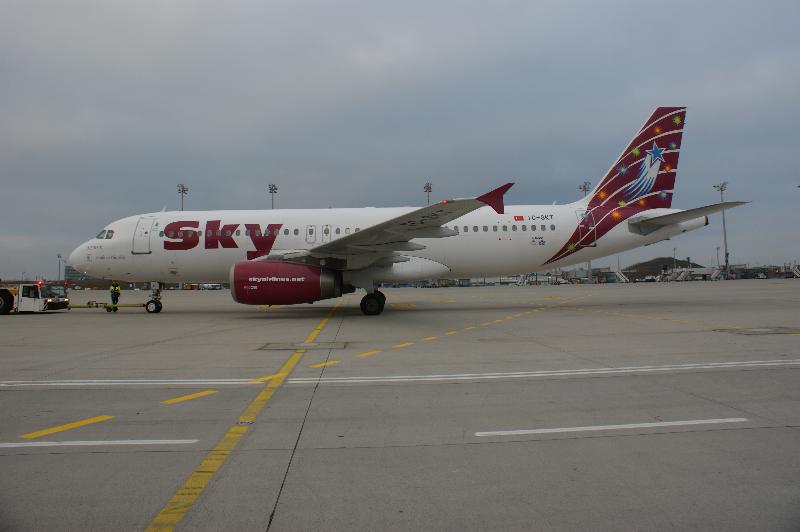 entstand in München dieses Foto des Sky Airlines Airbus A 320 in