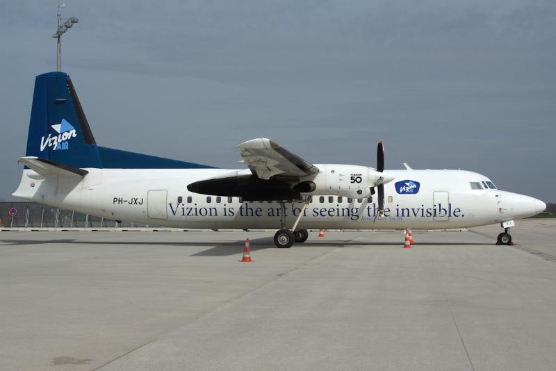 am 17.04.2013 kam diese Fokker 50 der Vizion Air für einen Kurzbesuch