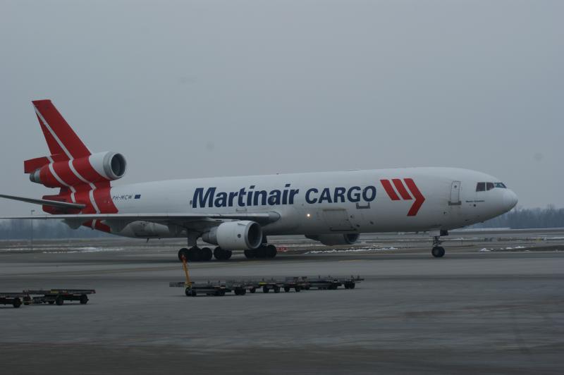 kam am 30.01.2014 diese MD 11 der Martinair Cargo nach München