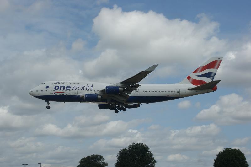 Airways Boeing 747 - 400 in "One World" Bemalung, LHR |