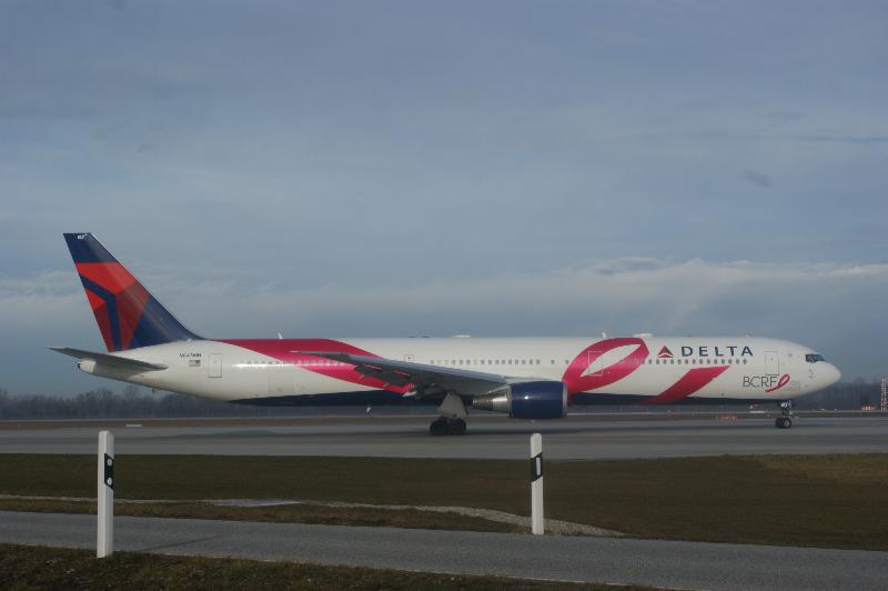 ihre einst pinke Boeing 767 jetzt mit dieser neuen Bemalung "gegen