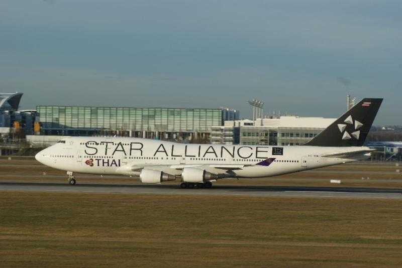 sich ab und zu in München auch mit der Boeing 747 - 400 in Star Alliance