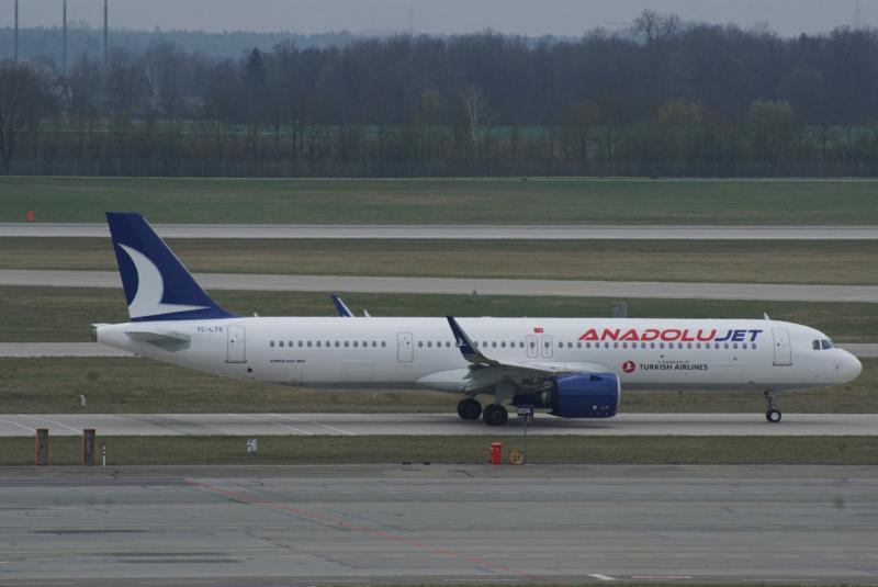 Airbus A 320 der Titan kam für einen Fußballcharter nach München. |