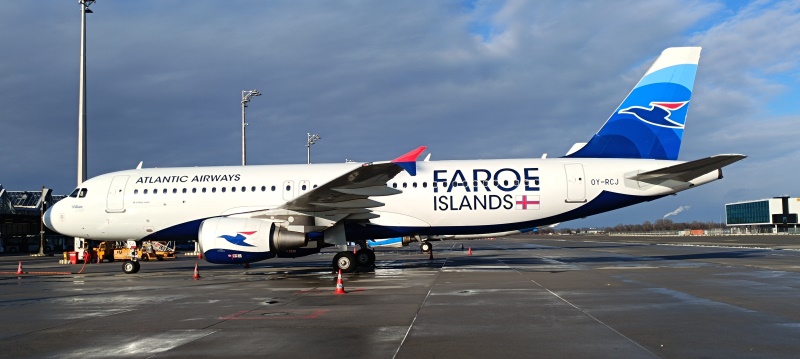 vom FC Kopenhagen kam am 29.11.2023 mit diesem Airbus A 320 der Atlantic