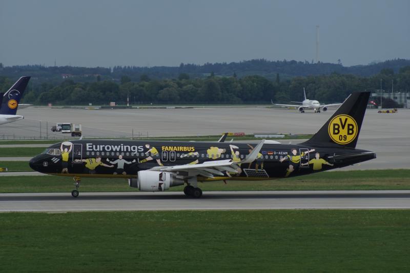 selten kommt dieser Airbus A 320 der Eurowings im BVB Farbkleid nach München.