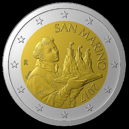 2-Euro-Münze: 2* in sechsfacher Wiederholung, abwechselnd von der
